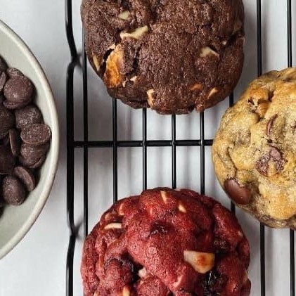 Combo composto pelos nossos cookies campeões de vendas: Kinder Red velvet com Ninho Ninho e Nutella