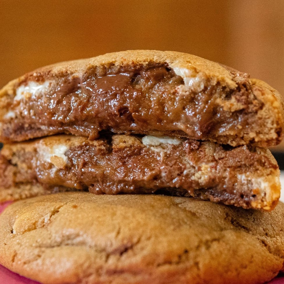 Cookie feito em homenagem ao tradicional doce americano s’mores, com uma massa especial com muitaaaaas gotas de chocolate, macia por dentro e crocante por fora e recheado com mashmalow. Para uma melhor experiência esquente seu cookie por 20seg no microondas.