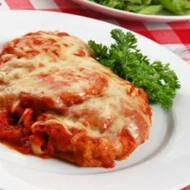 Delicioso Parmegiana De Carne(Contra Filé) Com Queijo,Molho Vermelho E Finalizado Com Cheiro Verde.