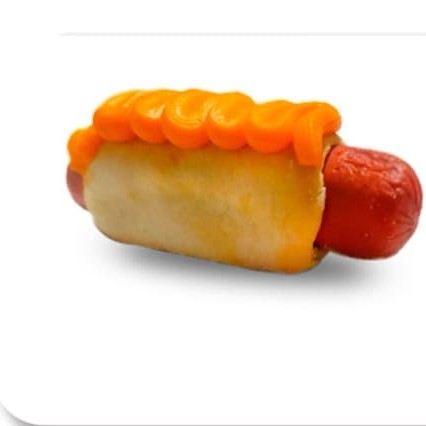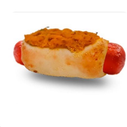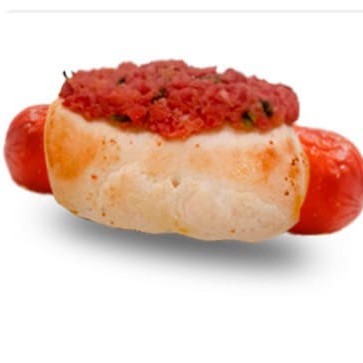 Ou, duas salsichas, tempero, ketchup, maionese, mostarda, molho Billy Jack, milho, ervilha, ovo de codorna, azeitona, queijo ralado, passas, batata palha e molho verde