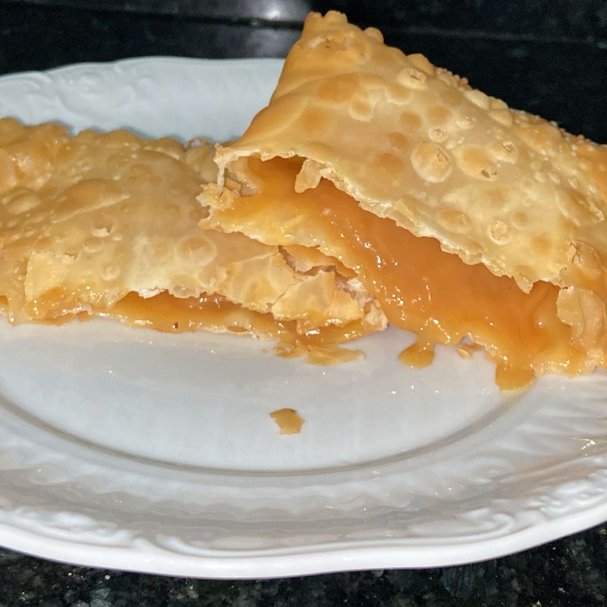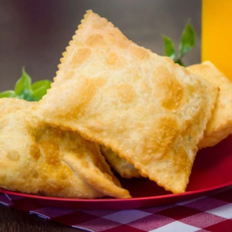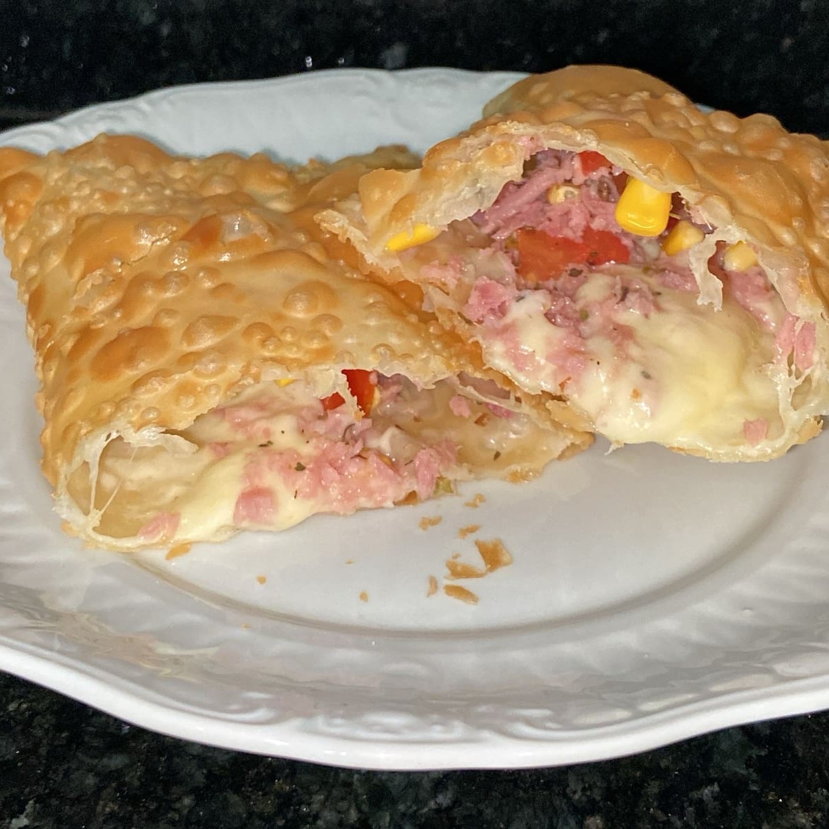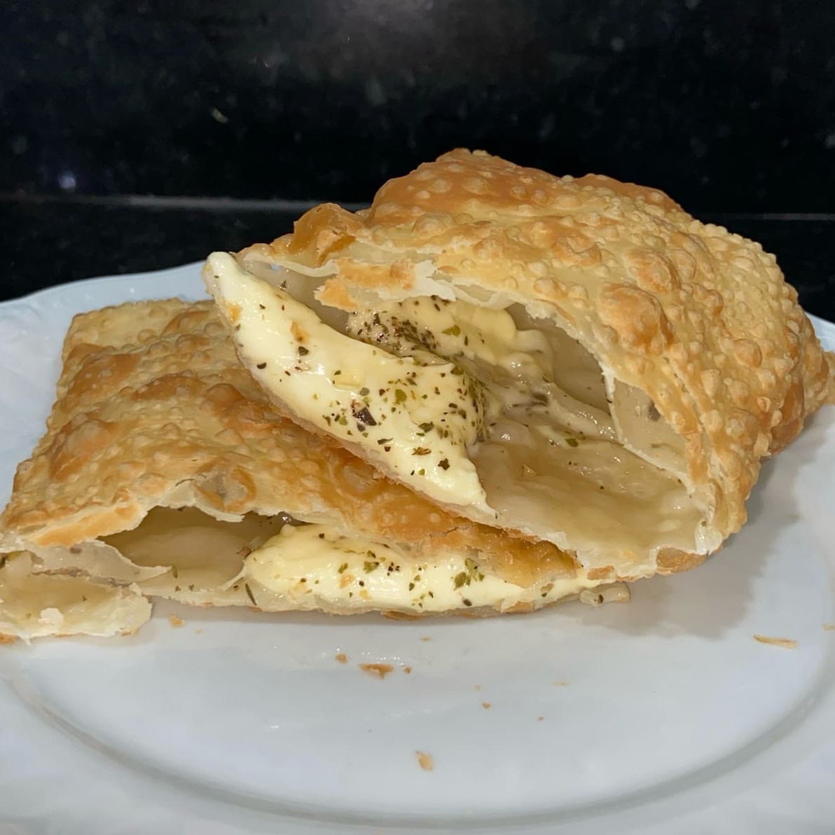 Suculento pastel recheado com queijo muçarela, bacon em cubos e ovo.