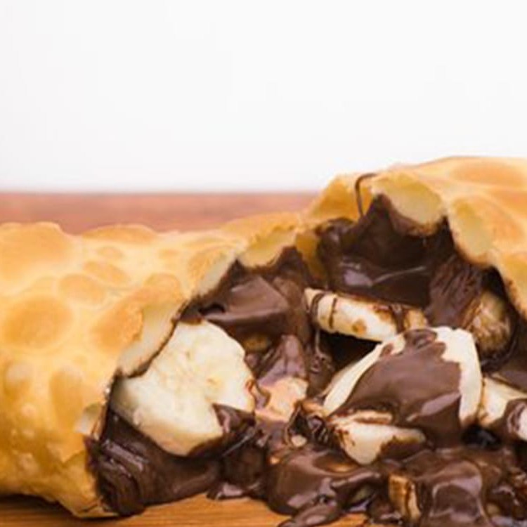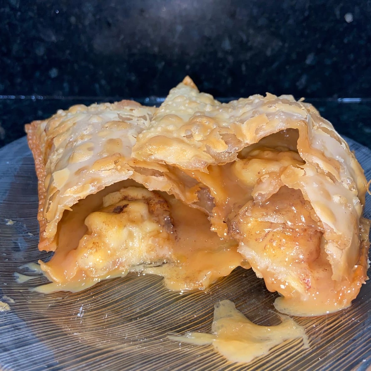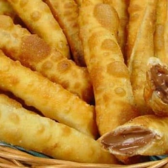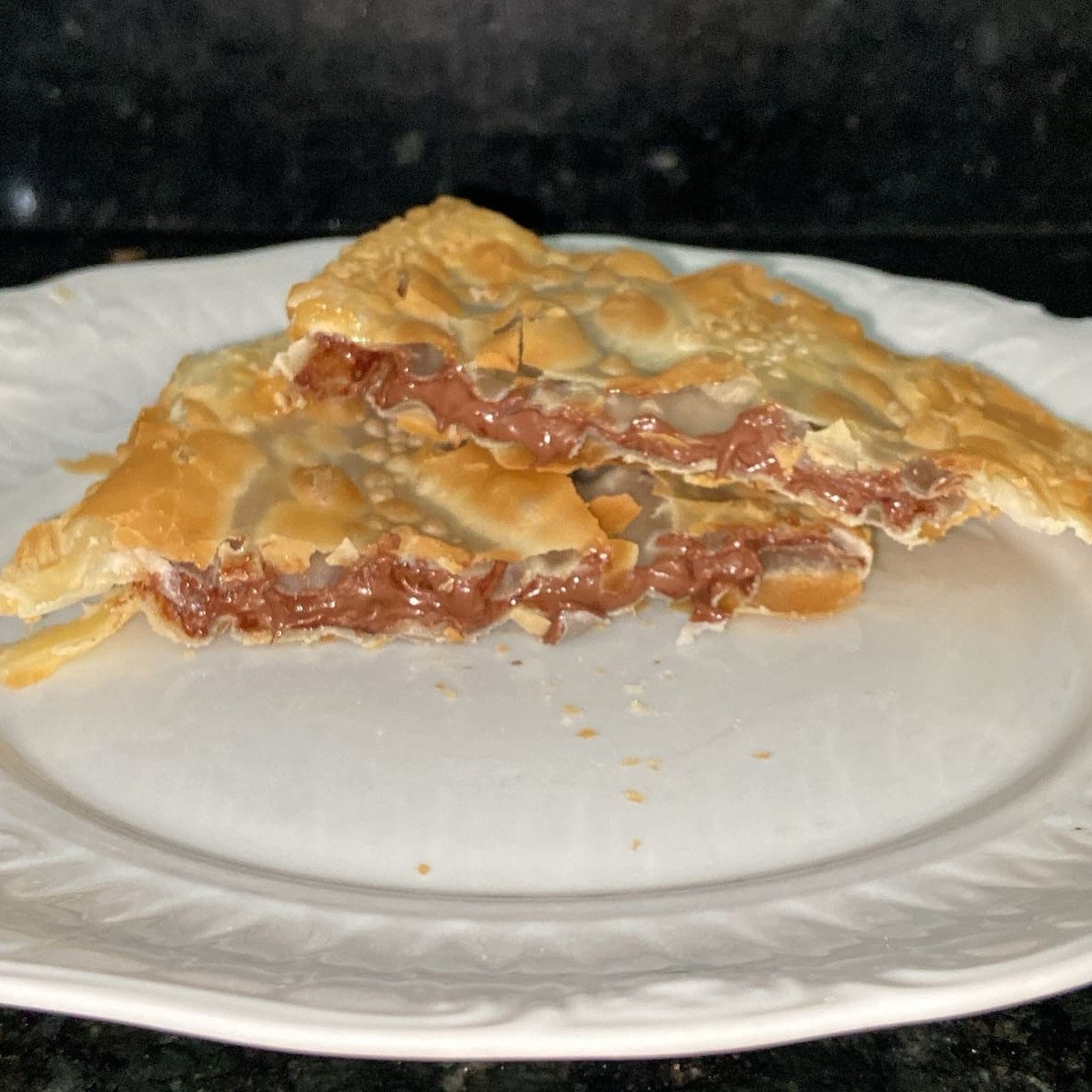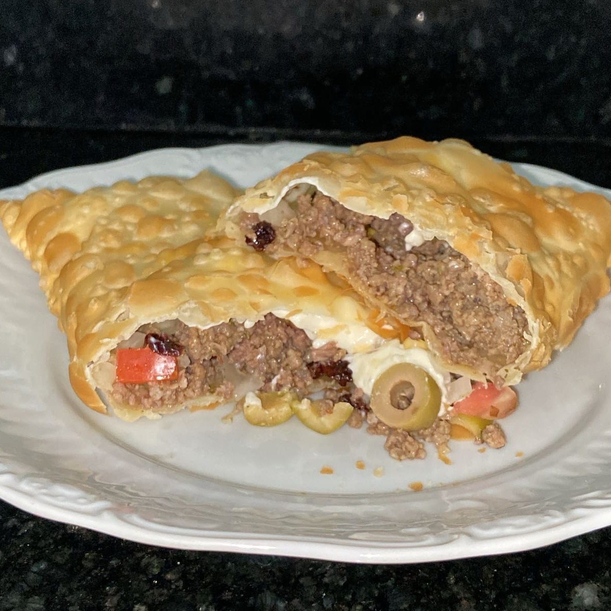 Suculento pastel recheado com queijo muçarela, bacon em cubos e ovo.