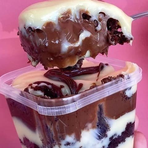 Bolo no Pote – Chocolate com Ninho e Chocolate Massa de chocolate super fofinha, recheada com um creme irresistível de leite Ninho e chocolate meio amargo. Uma combinação perfeita de sabores, montada em camadas que derretem na boca. Ideal para quem ama um doce cremoso, equilibrado e cheio de sabor!