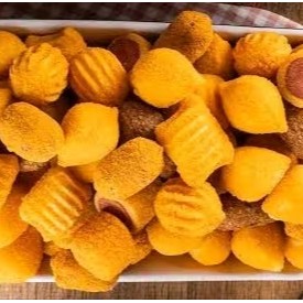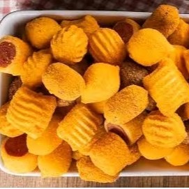 Caixa com 50 salgadinhos fritos na hora, montada com até 5 sabores que preferir, cada escolha corresponde a 10 unidades de cada sabor.