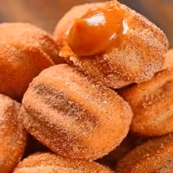 10 mini churros com massa levemente saborizada de baunilha, recheado com doce de leite cremoso, finalizados depois de frito com açúcar e canela