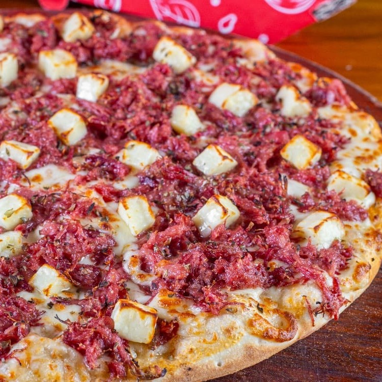 Deliciosa carne seca com queijo coalho, combinação perfeita entre a carne seca, com seu sabor intenso e textura macia, e o queijo coalho, com seu delicioso sabor levemente salgado. Uma explosão de sabores que irá conquistar seu paladar. Aproveite essa incrível opção da categoria La Gustosa Premium - 35cm. *Borda recheada não inclusa.