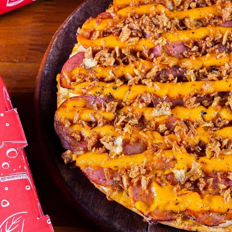 Uma combinação irresistível de calabresa, queijo cheddar e cebola crocante. Uma explosão de sabores em cada mordida. Experimente essa delícia hoje mesmo!