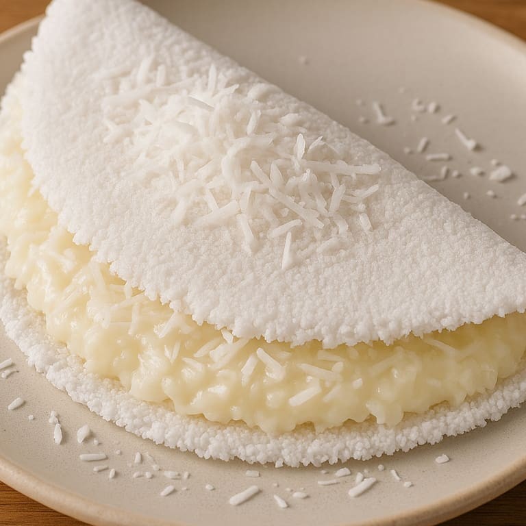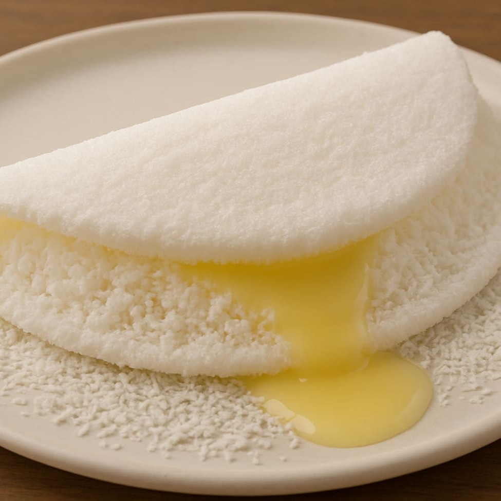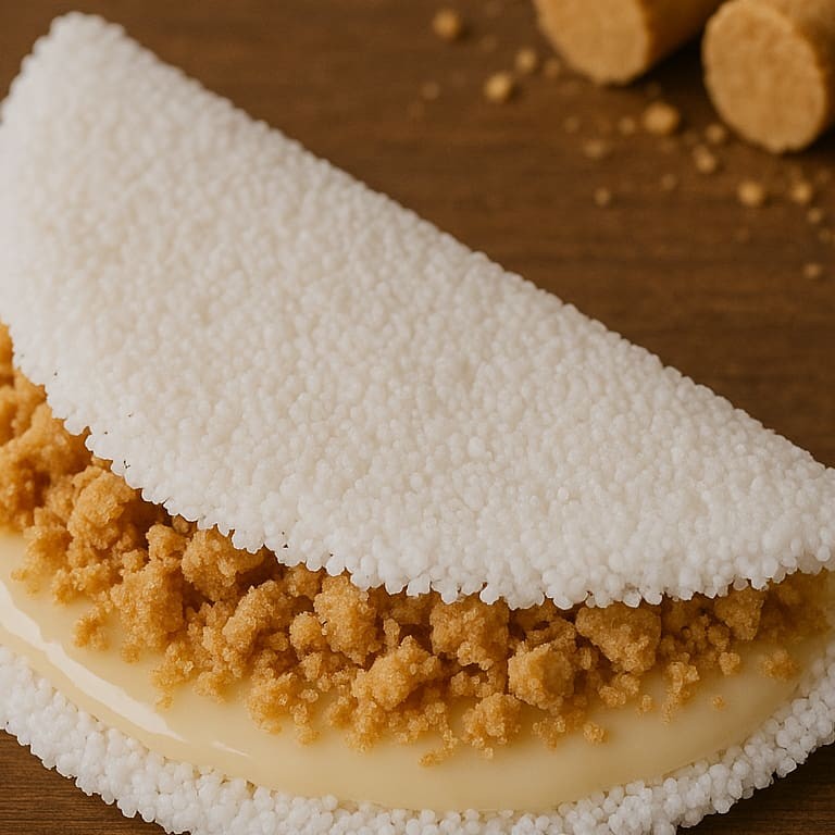 Nossa tapioca de coco com leite condensado, uma verdadeira indulgência e um clássico no mundo das tapiocas doces! Recheada com flocos de coco frescos e um generoso toque de leite condensado, essa tapioca combina a leveza da massa com a cremosidade do recheio.