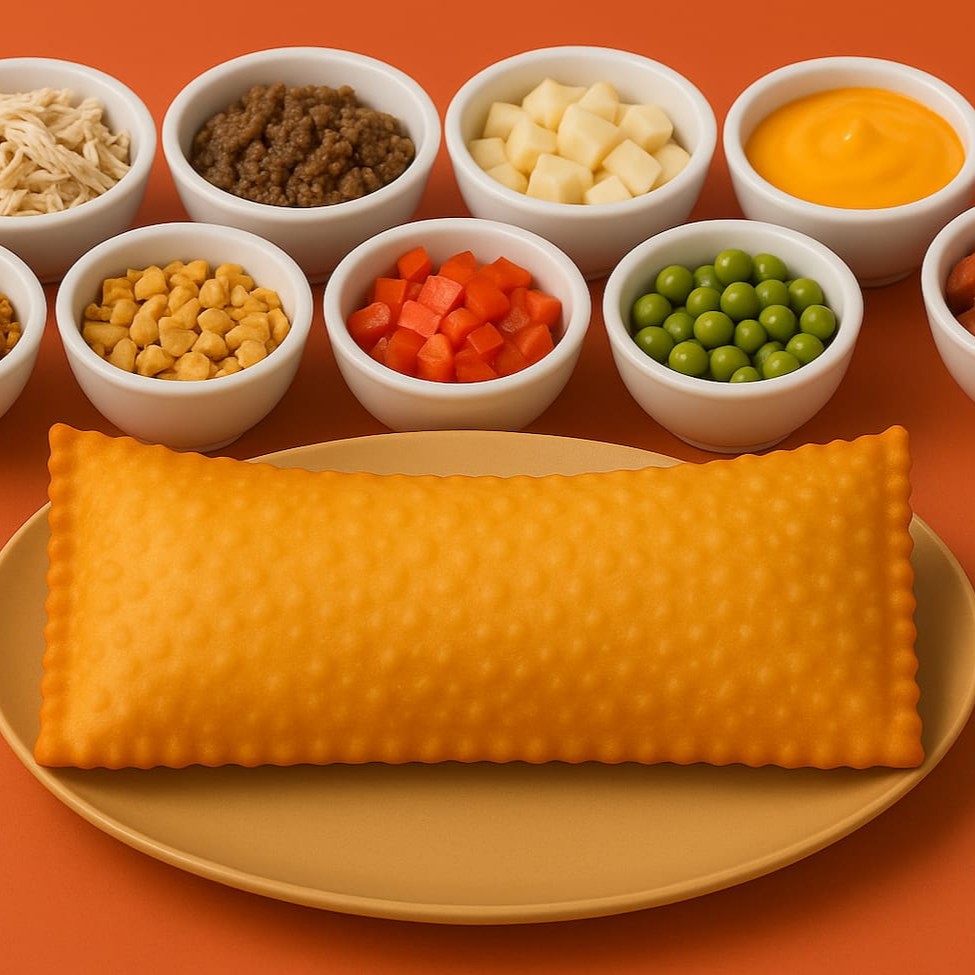 Desperte sua criatividade e paladar com o nosso Pastel! Escolha seus recheios para criar a sua combinação perfeita. Complemente com ingredientes frescos para um sabor surpreendente. Um pastel dourado e crocante, recheado exatamente como você gosta!