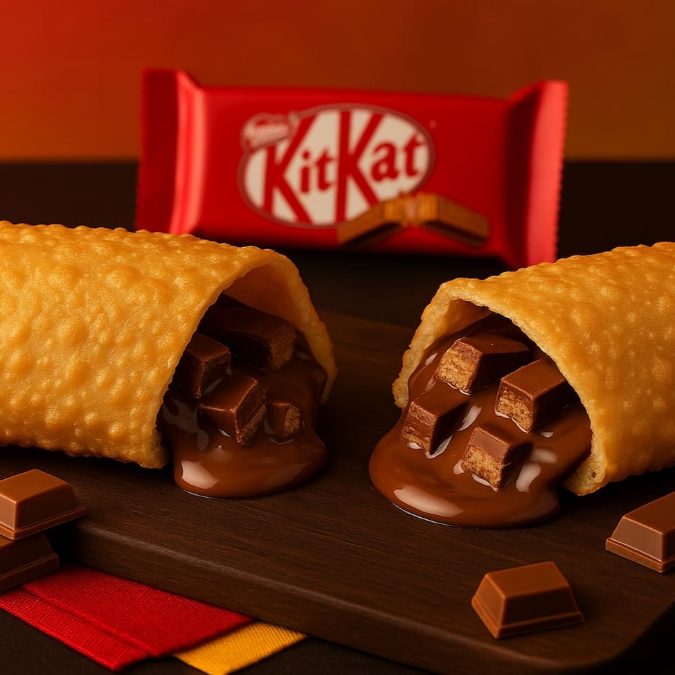 Nosso Pastel de KitKat é cuidadosamente preenchido com generosas e caprichadas porções de Kit Kat, envolvidas em uma camada de chocolate de qualidade que traz cremosidade em uma massa leve e crocante.