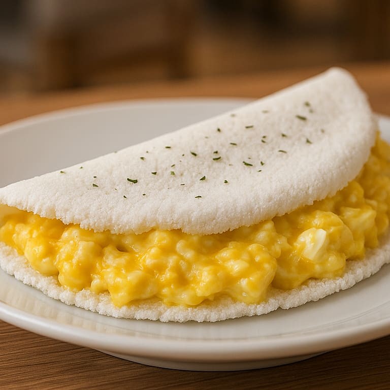 Saborosa tapioca recheada com ovo e queijo derretido, feita na medida certa para seu lanche ou refeição leve. Você pode escolher entre queijo muçarela, prato ou minas, ou até combinar os três para uma explosão de sabores irresistível. Imagem meramente ilustrativa!
