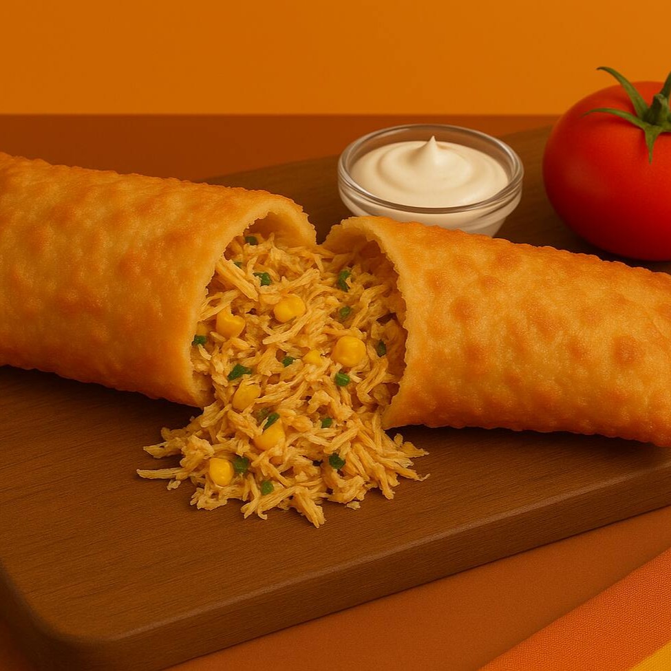 Nosso pastel de frango 20cm é recheado com frango desfiado temperado na medida certa, envolto em uma massa crocante e douradinha. Perfeito para qualquer hora do Dia, essa delícia combina suculência e crocância em cada mordida.