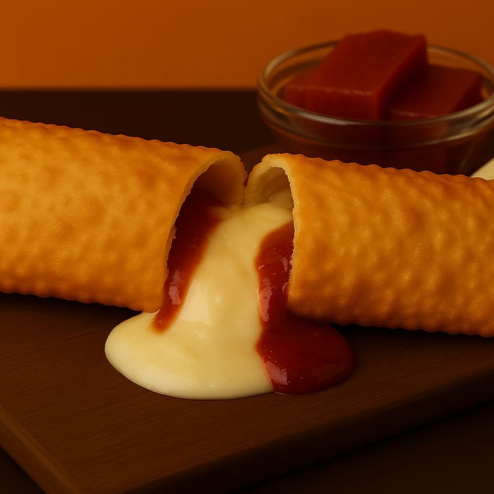 O Pastel Romeu e Julieta é uma verdadeira obra-prima da culinária doce, onde o clássico encontro do queijo fresco e a goiabada perfumada se unem em uma combinação perfeita e irresistível. Este pastel é uma homenagem à famosa história de amor.