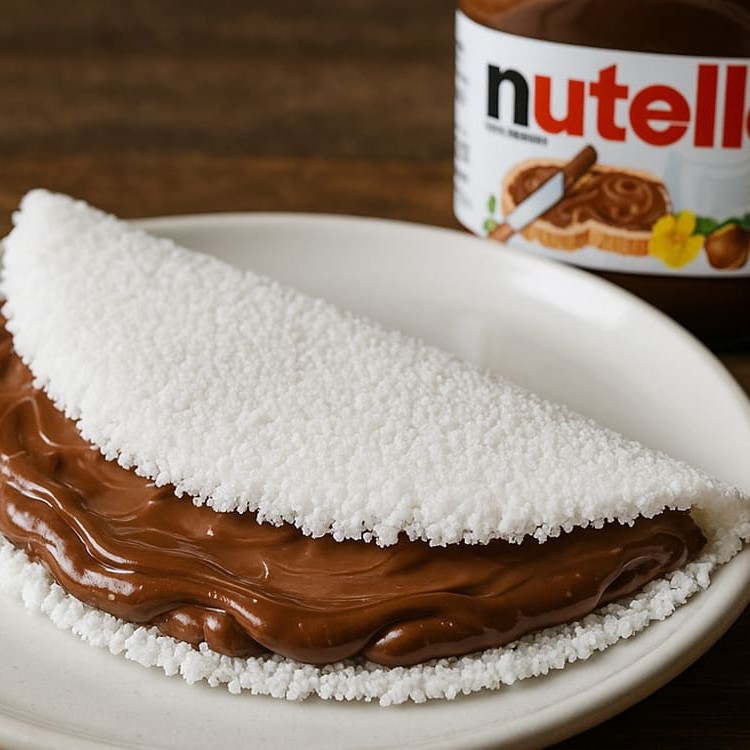 Saboreie nossa deliciosa tapioca de Nutella, um sonho para os amantes de desse famoso creme de avelã. Recheada com uma generosa camada de Nutella cremosa, essa tapioca combina a leveza da massa com o sabor rico e indulgente do chocolate aveludado