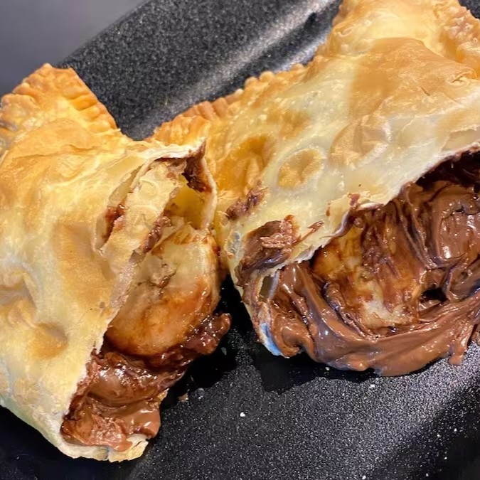 Deliciosa banana cortada em rodelas com chocolate ao leite super recheado