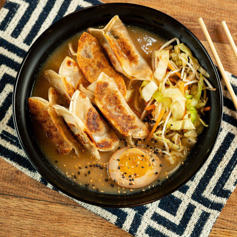 Um prato cheio de saúde e sabor, feito com a refrescância do nosso kimchi. Cenoura, repolho, broto de feijão, ovo, gergelim e 6 unidades de guioza.