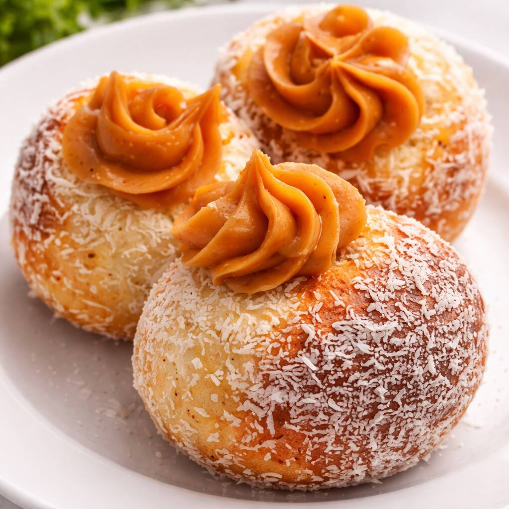 Pão doce recheado com doce de leite molhado no leite e polvilhado no coco.