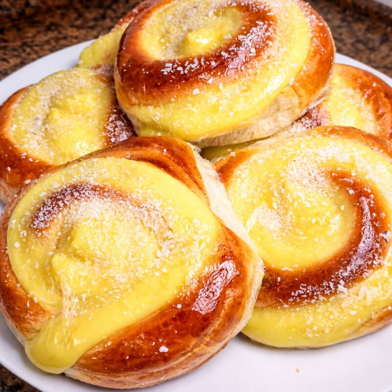 Massa adocicada , sai todo Dia fresquinho , com creme de confeiteiro tradicional.