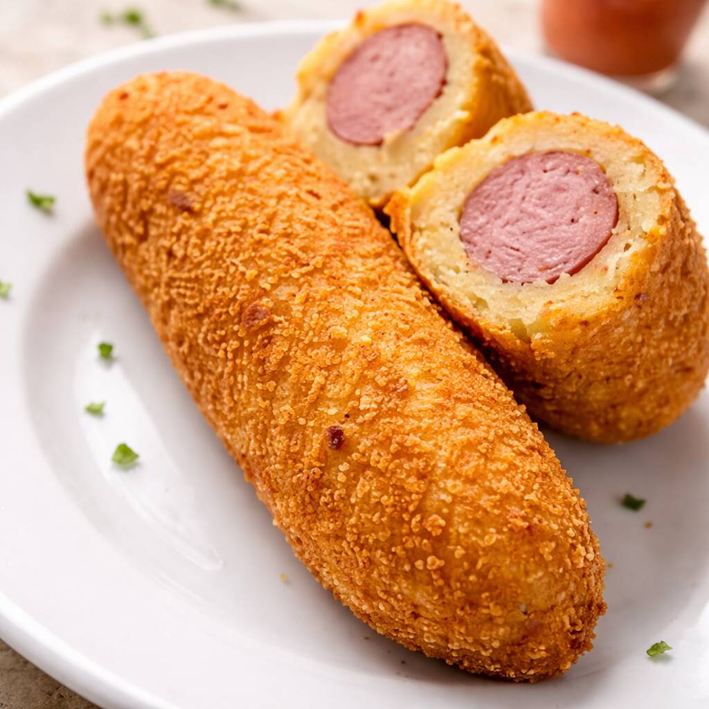 Salgado frito com massa crocante e dourada, salsicha de qualidade. Chega quentinho!