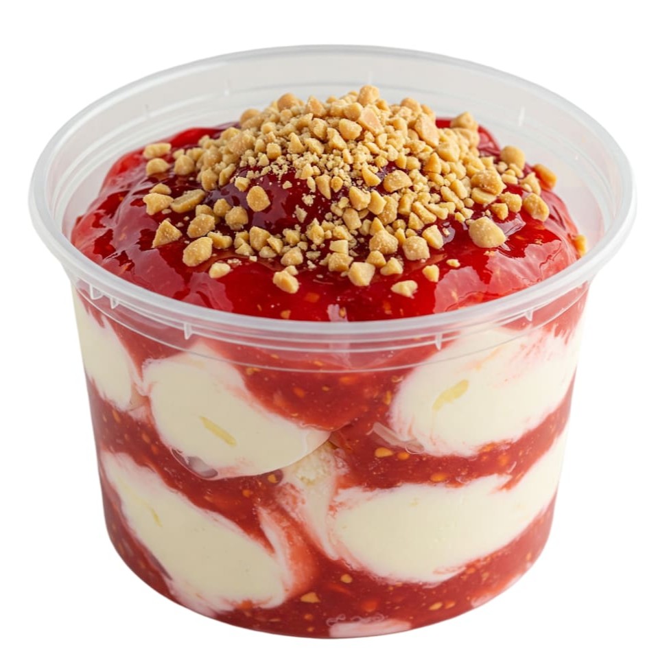 Açaí Sabor Morango + Leite Condesando + Leite Em Pó + Amendoim + Paçoca 500 Ml