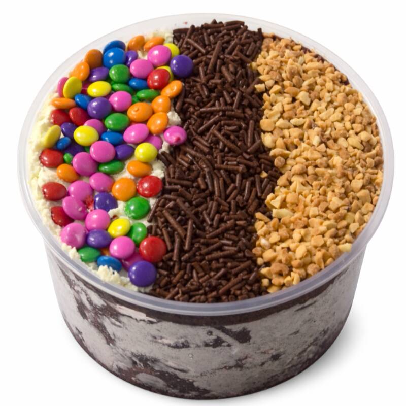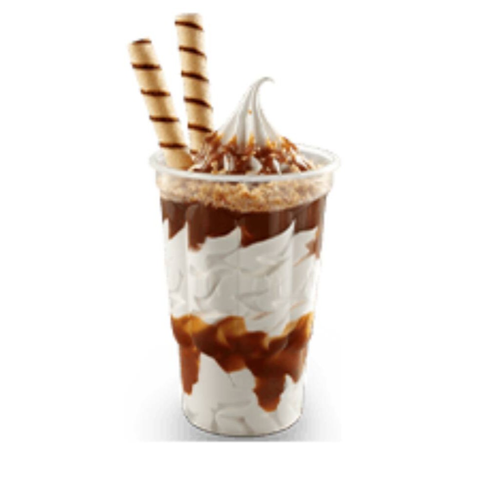 Sundae cremoso no sabor baunilha, acompanha amendoim crocante, biscoitinho e calda a sua escolha.