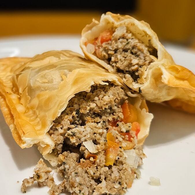 Recheio de massa de kibe com limão, tomate e cebola. Uma explosão de sabor!