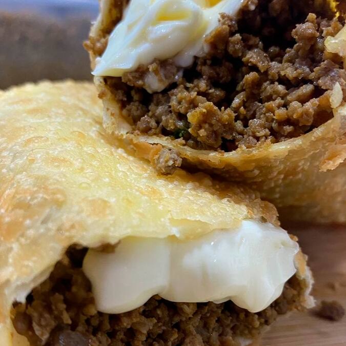 Carne moída soltinha de ponta a ponta com bastante Catupiry.