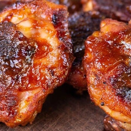Coxinhas das asas ou tulipas defumadas por horas na lenha de macieira, garantindo um sabor defumado sem igual. Acompanha arroz branco, fritas, farofa de costelinha defumada e vinagrete em porções para até três pessoas. Também acompanha molho barbecue.