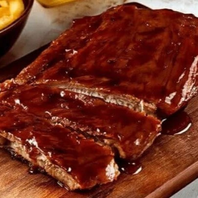 Desfrute uma deliciosa costelinha suína defumada ao molho barbecue. Acompanha arroz branco, batata frita, uma farofa de costelinha defumada e vinagrete.