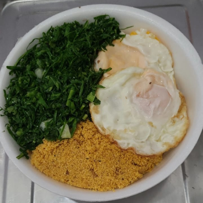 Arroz, Feijão, Farofa da casa, Couve mineira e 2 ovos fritos e Macarrão aprox:500g