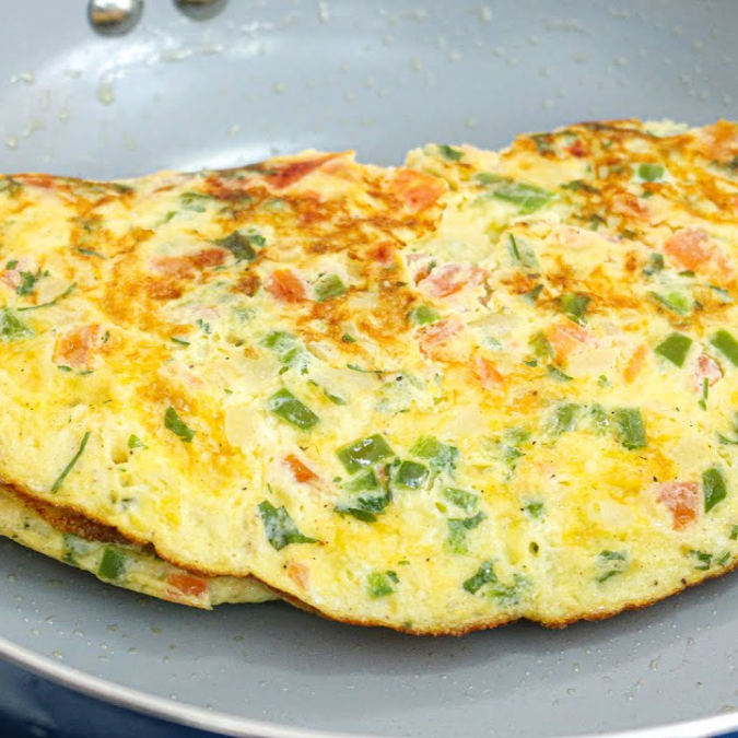 Deliciosa omelete da casa acompanha, arroz, feijão, macarrão, batata frita e farofa da casa, aprox:500g