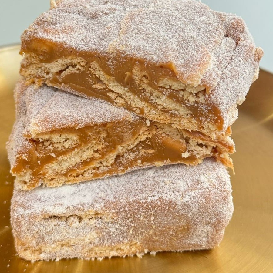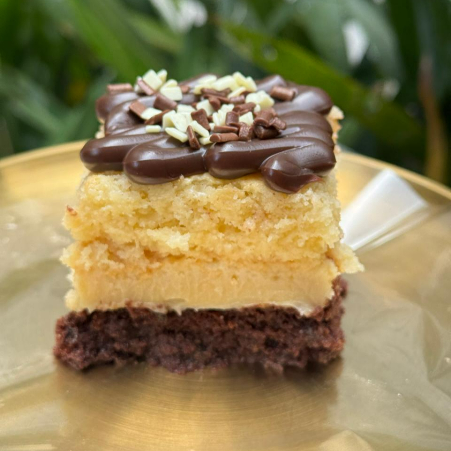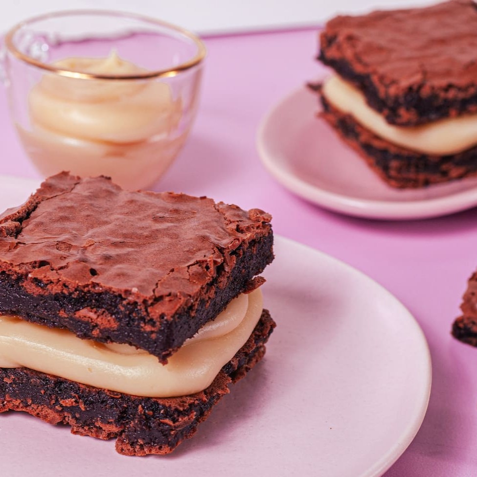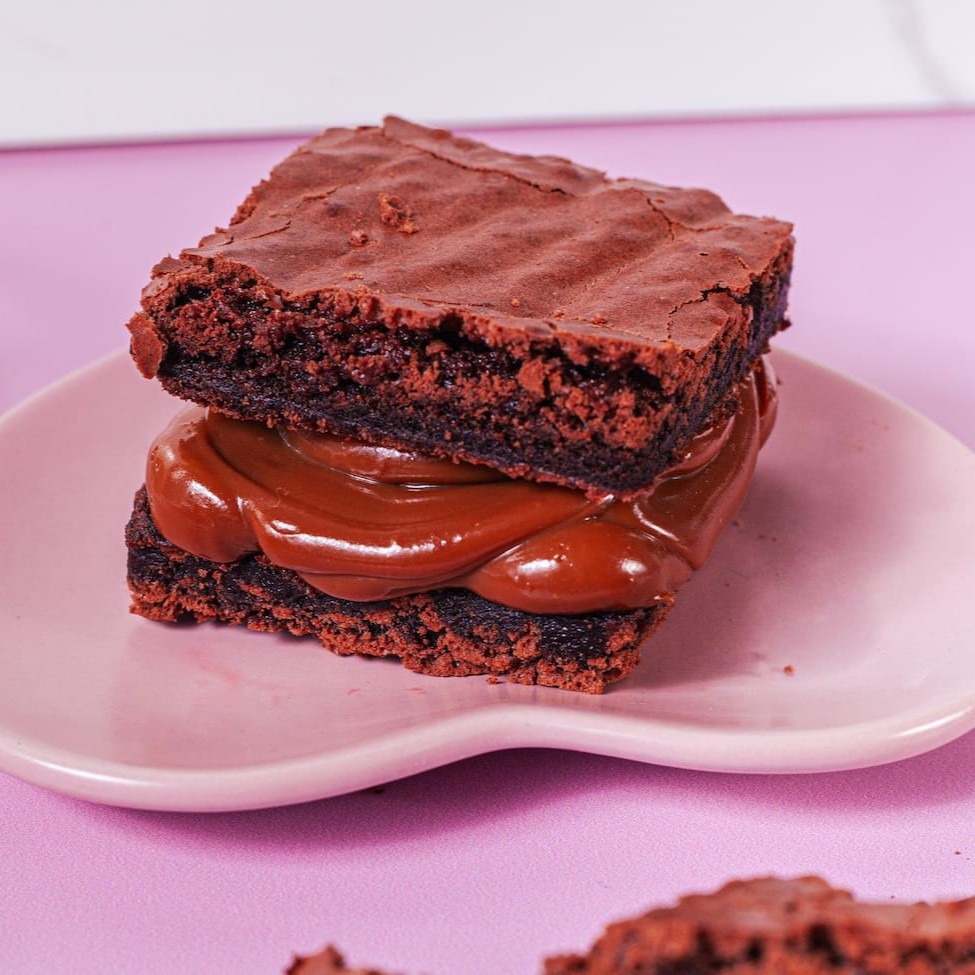 Massa de brownie tradicional, com recheio delicioso de doce de leite.