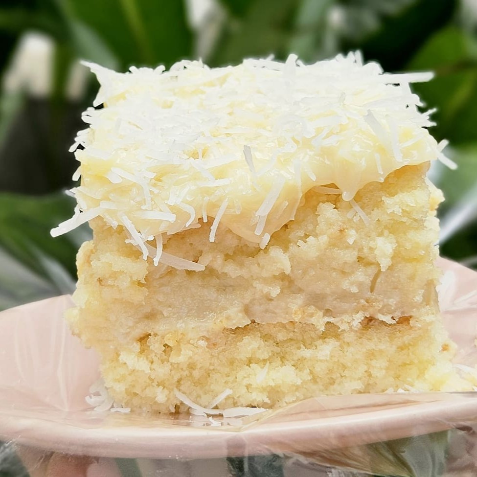 Massa bem molhadinha de coco, com recheio cremoso de coco.