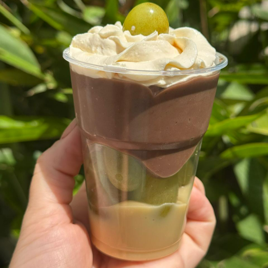 Com uma camada irresistível do nosso mousse de Ninho com uvas frescas e docinhas, finalizadas com nosso brigadeiro ao leite