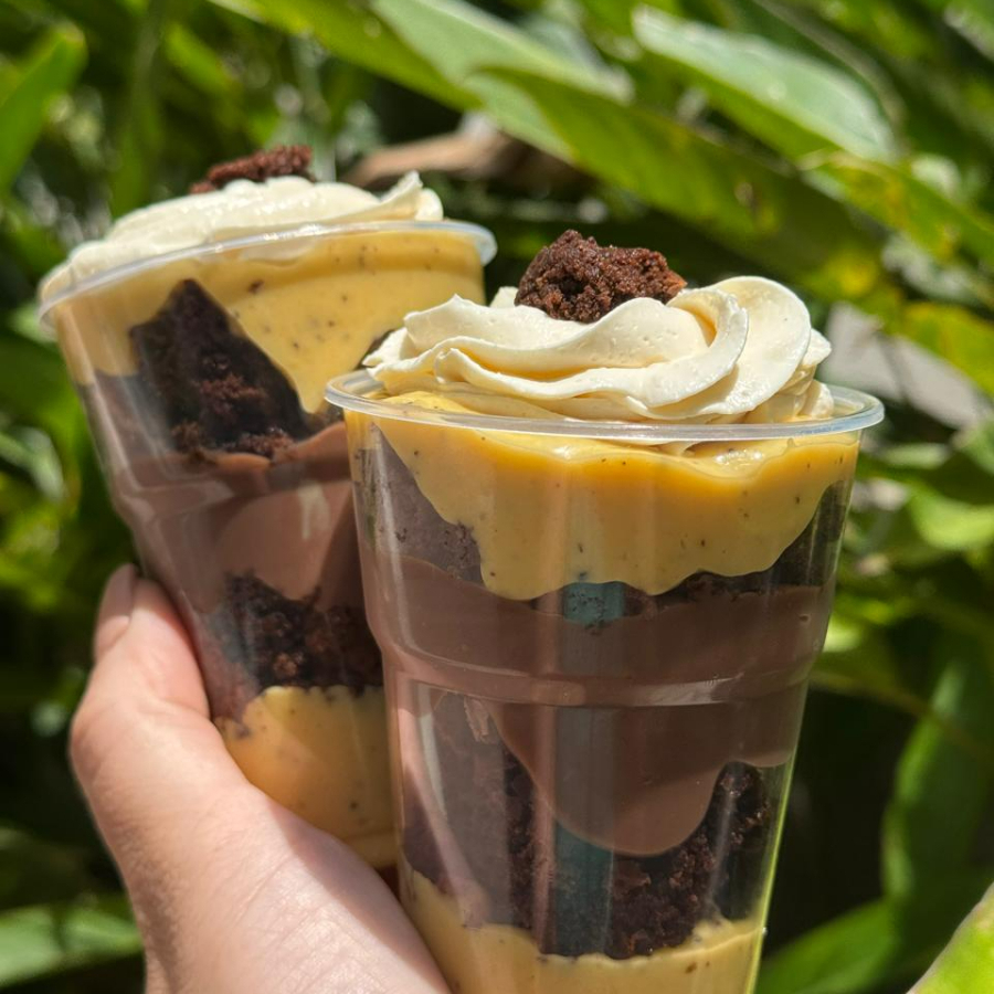 Brigadeiro de maracujá cremoso com pedaços de brownie e brigadeiro ao leite