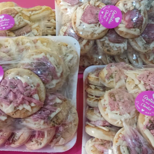 25 unidades por bandeja pode ser calabresa ou presunto