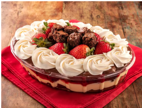 Creme de galak, Brownie, Creme de chocolate, Morango Picados, Creme de galak finalizado com Pudim 1 unidade. 500 gr. 400 ml.
