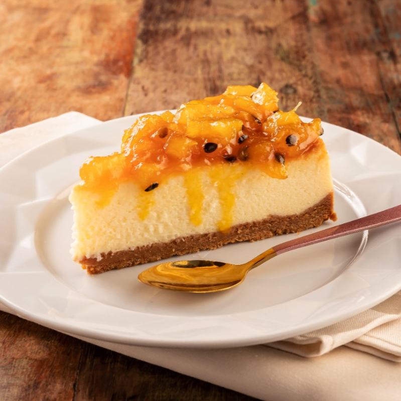 Massa crocante. Creme de cream cheese Original, finalizado com frutas vermelhas e pedaços de morangos.
