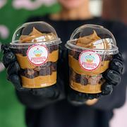 Delicie-se com nosso copo de brownie irresistível! Brownie molhadinho por dentro e com uma casquinha crocante, combinado com camadas cremosas de DOCE DE LEITE caseiro. (150ml)