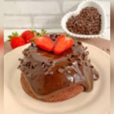 Desfrute do mini bolo vulcão de morango com chocolate, uma combinação clássica e deliciosa que une o doce morango ao rico chocolate. (Foto meramente ilustrativa)150gramas