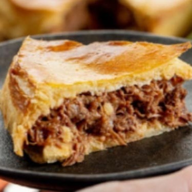 Aprecie o empadão de costela com cream cheese em uma porção generosa, perfeita para um almoço ou jantar especial. (Foto meramente ilustrativa)