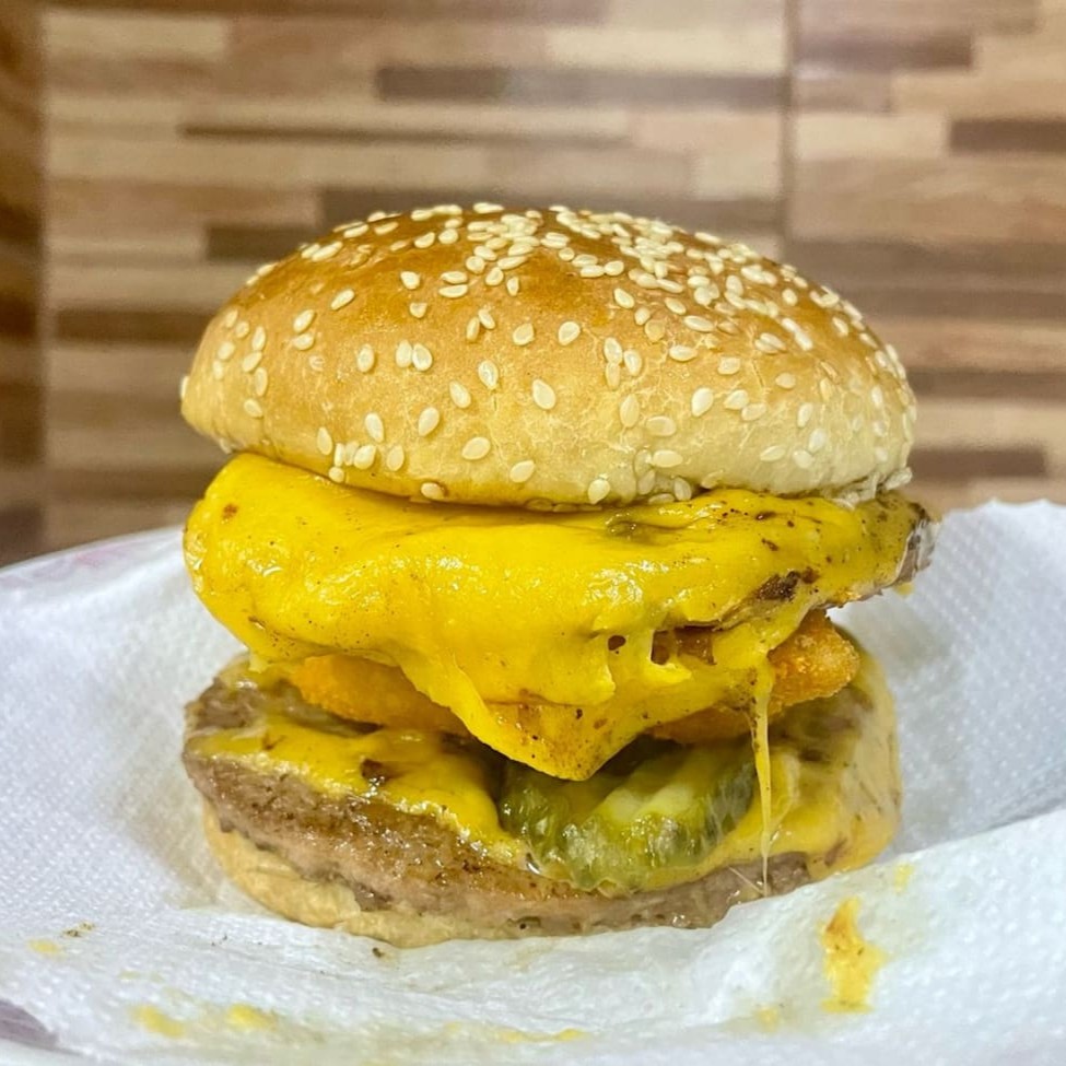 Pão, 2 carnes, 2 cheddar ou mussarela, presunto, 2 ovos, calabresa, picles e molho billy jack