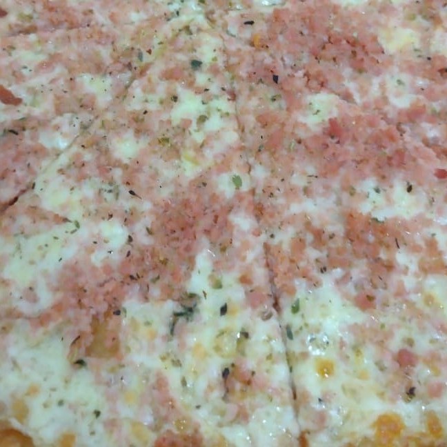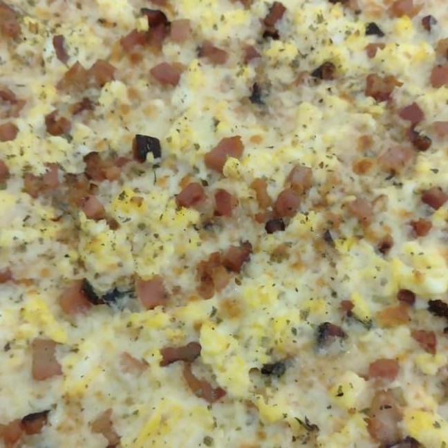 Mussarela, bacon, ovos e oregano.