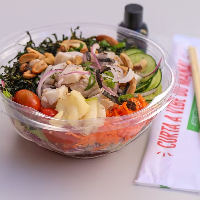 Monte seu poke + água de coco ou suco natural de 300ml geladinho.