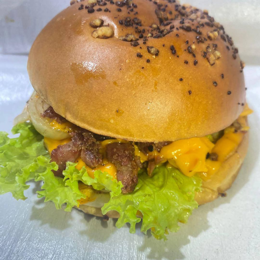 Pão 4 hambúrgueres de picanha ,queijo ,baconcalabresa alface ,molho bilijack , barbecue , maionese temperada ,