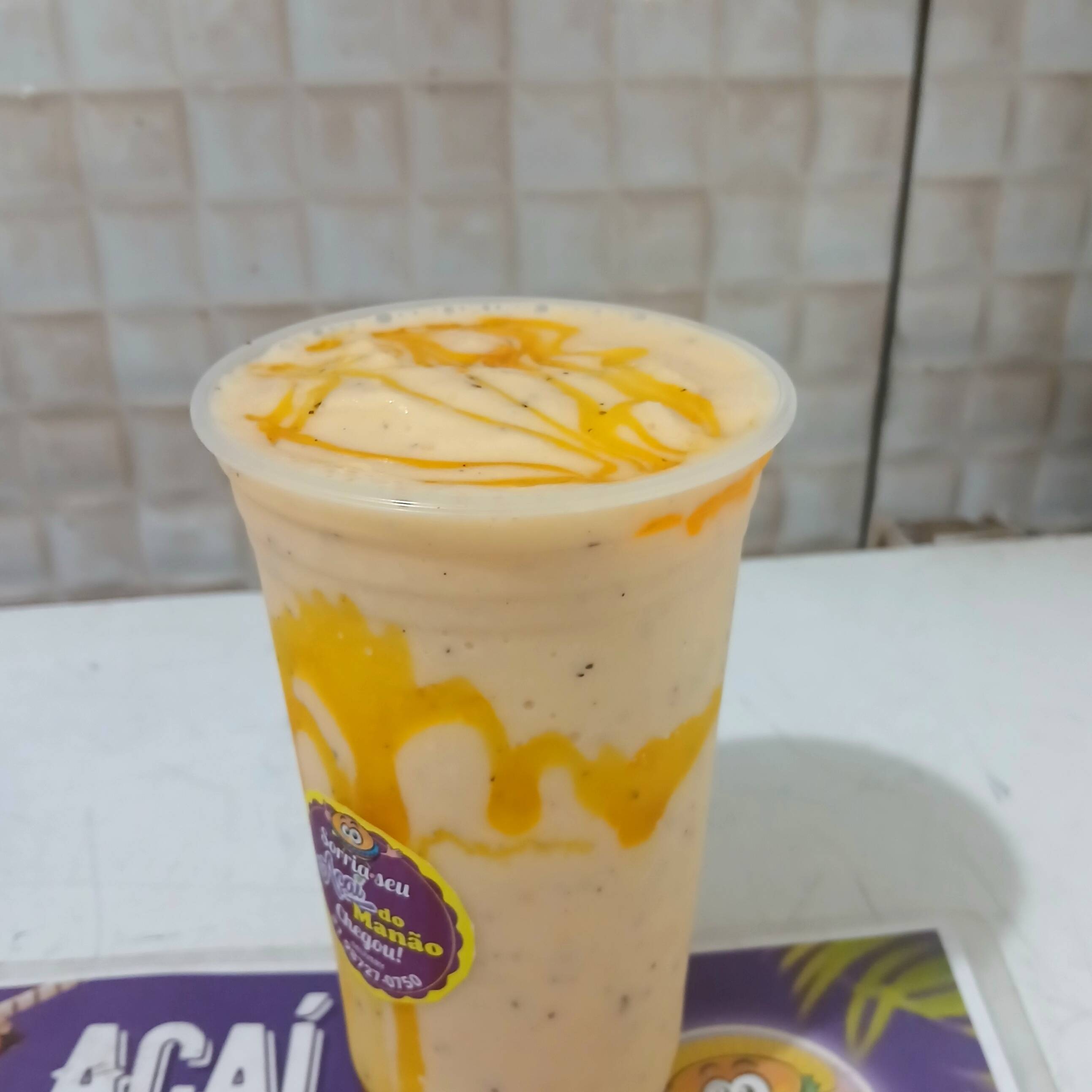 Acompanhamento amendoim, paçoca, granola, granulado, chocobol, flocos de arroz, aveia ,leite pó, jujuba e biscoito. Ate 2 caldas da sua preferência