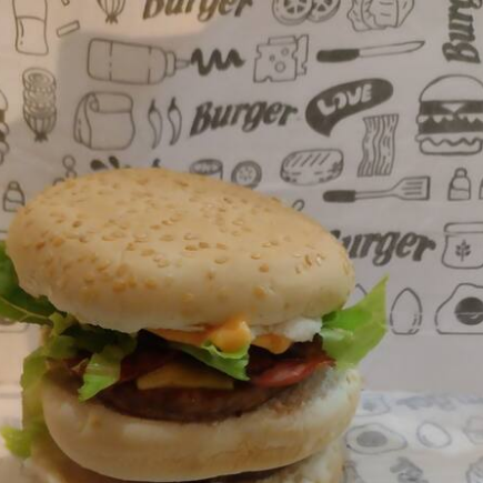 Pão carne queijo ovo molho bilijack , barbecue e salada