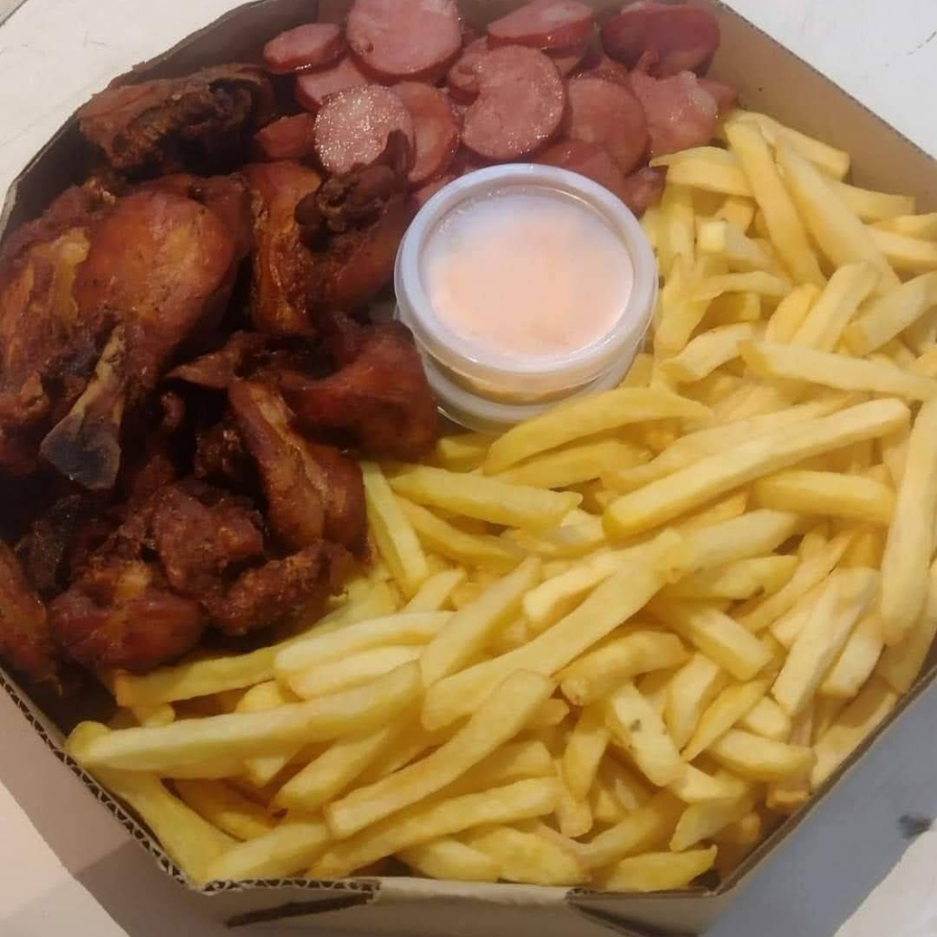 800 g de batata 500g de frango passarinho ,200 g de calabresa