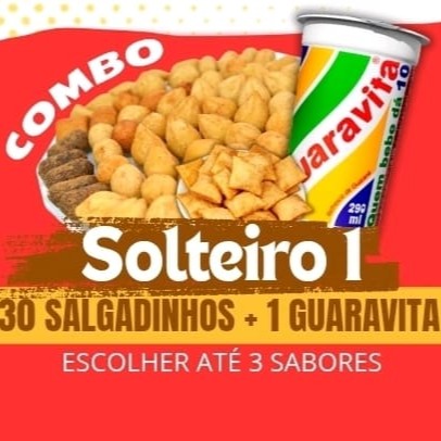 COMBO SOLTEIRO • 30 SALGADINHOS/ MINI PASTÉIS. ( PODENDO ESCOLHER ATÉ 3 SABORES ), + 1 GUARAVITA. PS:. PARA MUDAR O GUARAVITA PARA REFRI LATA TEM ACRÉSCIMO