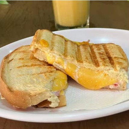 Sanduíche Natural de frango, Suco de Laranja e Salada de fruta + leite de condensado